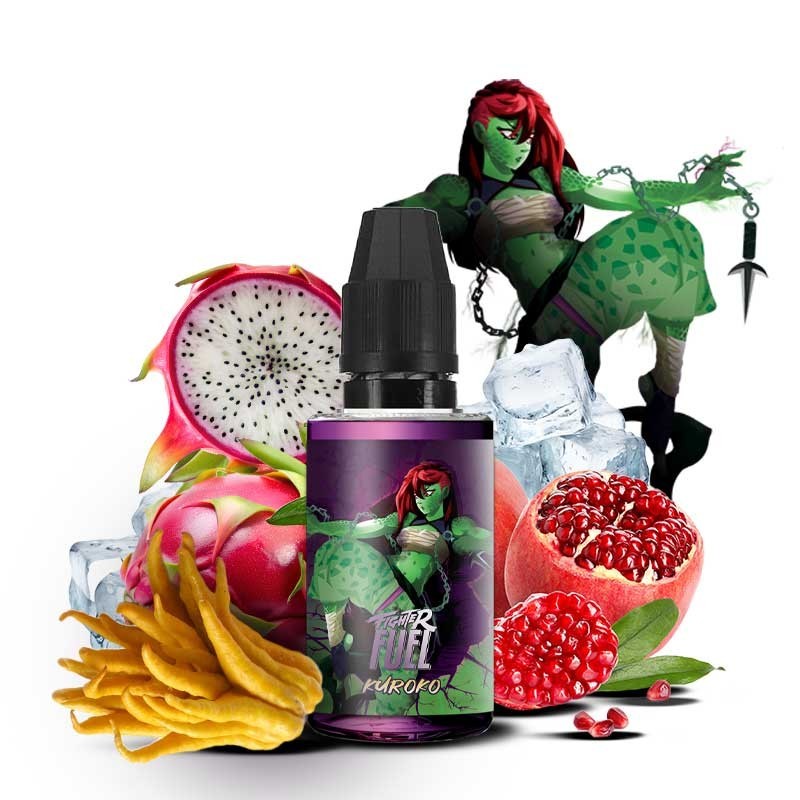 Fighter Fuel propose un arôme concentré aux saveurs multiples et à la fraîcheur intense. La préparation DIY Kuroko débute en douceur avec des goûts délicats de fruit du dragon. Le fruit à la carapace intimidante est accompagné d'un subtil jus de grenade venu de contrées lointaines. Au fil de la dégustation, la délicatesse s'efface et laisse la place à l'acidité du cedrat. Fighter Fuel dévoile un arôme DIY aussi fruité que frais : un must !